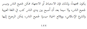“…oleh kerana itu, sesungguhnya penggalian hukum atau ijtihad itu adalah mungkin bagi semua orang, dan sangat mudah bagi semua orang, terutama setelah buku-buku tentang bahasa Arab dan syariat Islam ada di tangan mereka…”