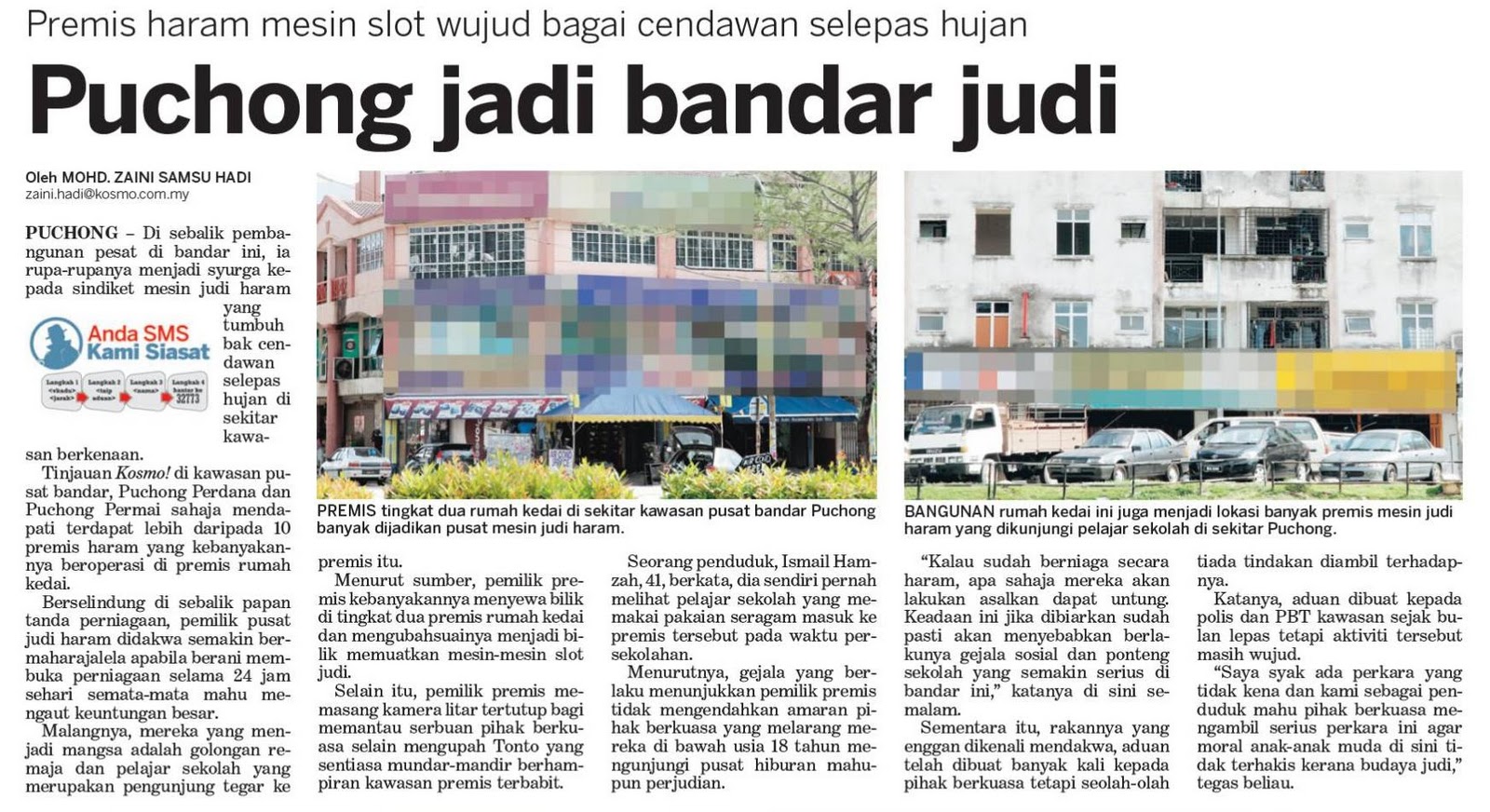 Pertumbuhan pusat-pusat perjudian siber di negara ini nampaknya semakin subur. Akhbar Sinar Harian baru-baru ini melaporkan terdapat sekurang-kurangnya lima premis perjudian siber di sekitar kawasan Taman Semabok Perdana, Melaka, yang menjadi lubuk perjudian di Melaka. Apa yang menyedihkan ialah apabila ramai di kalangan kaki judi siber ini terdiri dari anak-anak muda Islam. Lebih parah, apabila pihak berwajib tidak mengambil tindakan serius untuk mengatasi kemaksiatan ini.