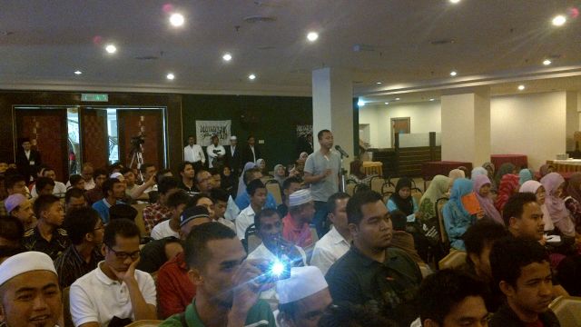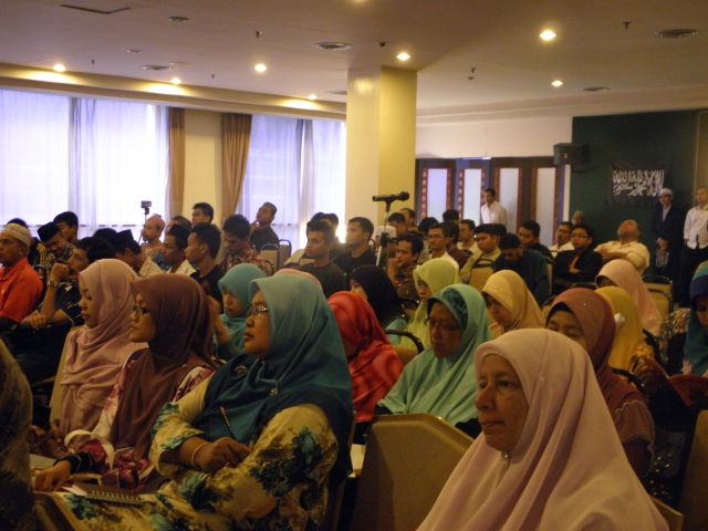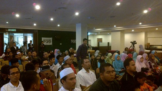 JOHOR BAHRU 20 Mei – Selepas Sandakan, kini giliran Johor Bahru pula menerima kunjungan Hizbut Tahrir Malaysia (HTM) di dalam siri jelajah ‘Dialog Negara Islam bersama HTM’. Lebih kurang 200 orang memenuhi dewan Jade Hall, Hotel Goodhope untuk bersama-sama majlis dialog yang julung kali diadakan oleh HTM ini. Program dimulai lebih kurang jam 9.00 pagi dengan bacaan ayat-ayat suci Al-Quran sebelum kedua-dua ahli panel mengambil tempat.