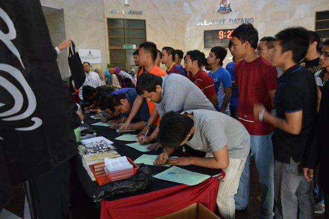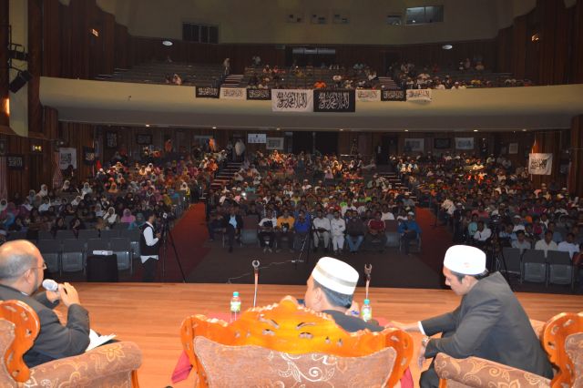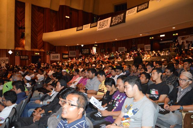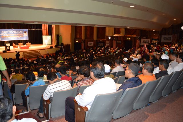 PETALING JAYA 2 Disember – Auditorium Dewan Sivik, Majlis Bandaraya Petaling Jaya menjadi saksi kepada sambutan hangat umat Islam ke atas perjuangan menegakkan Khilafah. Hampir semua kerusi auditorium dipenuhi oleh para hadirin yang datang dari seluruh pelosok tanah air.Majlis yang bermula lebih kurang jam 9.20 pagi itu dipengerusikan oleh Sdr. Mahmud dan dimulakan dengan bacaan ayat-ayat suci Al-Quran oleh Sdr. Shahril. Moderator dalam Dialog Negara Islam siri akhir jelajah Malaysia ini adalah Sdr. Muaz Abu Thalhahmanakala Presiden Hizbut Tahrir Malaysia (HTM), Ustaz Abdul Hakim Othman dan AJK Pusat HTM, Ustaz Umar Hussein selaku ahli panel.