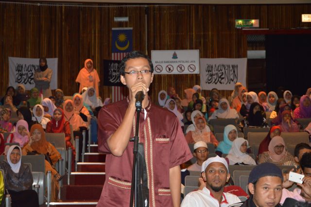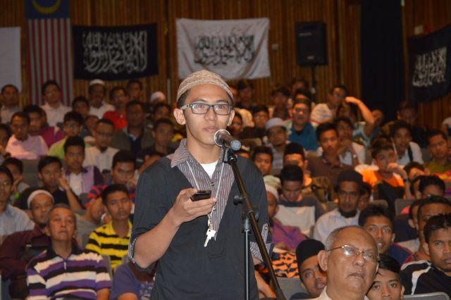 Sebaik sahaja sesi dibuka kepada soalan, kedua-dua ahli panel terus dihujani dengan pelbagai soalan yang dilontarkan secara lisan, bertulis dan juga SMS. Antara soalan-soalan yang diajukan adalah tentang demokrasi, pilihanraya, bagaimanakah cara Hizbut Tahrir menegakkan Khilafah dan beberapa soalan berkaitan bagaimana Khilafah dapat memimpin dunia dengan pelbagai tentangan yang ada sekarang. Ahli panel juga turut ditanya tentang pilihan raya umum (PRU) ke-13 serta hukum mengambil bahagian di dalamnya. Menariknya, terdapat juga soalan yang ditanyakan di dalam bahasa Inggeris oleh pelajar Afghanistan yang sedang belajar di Malaysia yang turut hadir menyatakan sokongan kepada usaha penegakan Khilafah. Muslimah yang hadir juga turut tidak ketinggalan melontarkan persoalan dan ada yang memberi komen menyatakan sokongan padu kepada usaha HT di dalam menyedarkan umat Islam tentang kepentingan dan kewajipan menegakkan Daulah Islam.