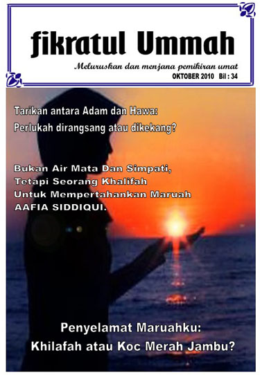 Alhamdulillah, Fikratul Ummah bulan ini memaparkan dua buah artikel dan sebuah artikel terjemahan. Penyelamat Maruahku: Khilafah atau Koc Merah Jambu menjelaskan tentang kegagalan usaha murni pihak KTMB memisahkan koc lelaki dan wanita akibat tidak adanya penguatkuasaan undang-undang. Manakala artikel Tarikan antara Adam dan Hawa: Perlukah dirangsang atau dikekang? menjelaskan tentang naluri melanjutkan zuriat (gharizah an-nau’) yang dianggap sebagai satu keperluan manusia yang sangat penting sehingga mampu menjejaskan produktiviti manusia jika tidak dipenuhi sebagaimana yang dianuti oleh fahaman penganut Kapitalis dan Komunis. Artikel terjemahan yang berkisar tentang Dr Aafia Siddiqui menjelaskan tentang keperitan seorang Muslimah dek kekejaman musuh-musuh Islam tanpa pembelaan dari seorang Imam/Khalifah. Manakala Forum “Selamatkan Muslimah dengan Syariat” memaparkan aktiviti Muslimah terjun ke dalam masyarakat dengan penyelesaian tuntas menurut syarak ke atas isu-isu sosial yang melibatkan golongan wanita termasuk Muslimah.