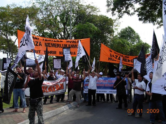 KUALA LUMPUR 9 Jan – Markas Angkatan Tentera Malaysia (ATM) di Jalan Padang Tembak hari ini gempar dengan acara penyerahan memorandum dan juga laungan jihad oleh sejumlah aktivis gerakan Islam, Hizbut Tahrir Malaysia (HTM).Hizbut Tahrir Malaysia telah menggerakkan umat Islam bagi mendesak Angkatan Tentera Malaysia untuk bertindak segera menyelamatkan Gaza daripada keganasan rejim Israel. Selesai solat Jumaat di Masjid Khalid Al-Walid, yang terletak berhampiran Markas ATM tersebut , Hizbut Tahrir telah menyeru dan mengajak umat Islam untuk bersama-sama mendesak ATM bagi melancarkan jihad ke Israel. Jihad yang diserukan adalah jihad yang sebenar iaitu jihad fi sabilillah, dengan ATM menggerakkan seluruh tentera udara, darat dan laut bagi menyelamatkan umat Islam yang sedang dibunuh dengan kejam oleh Israel di Palestin. Sebagai salah sebuah angkatan bersenjata kaum Muslimin, adalah wajib bagi ATM menghantar tentera ke Gaza tanpa berlengah sedikit pun.