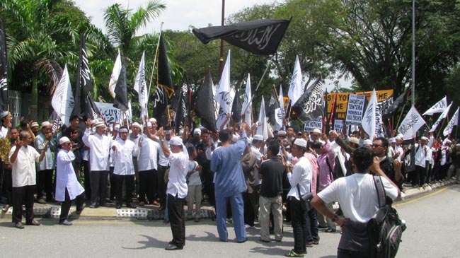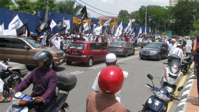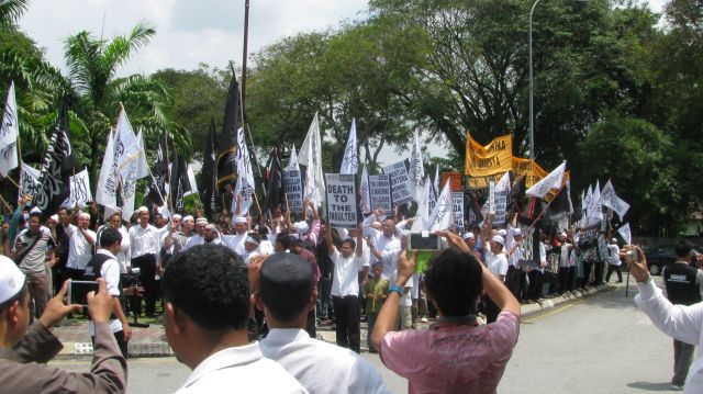 Sekitar 300 anggota dan penyokong HTM melaungkan takbir berkali-kali di sepanjang demonstrasi aman tersebut. Para demonstran kemudian bergerak dari masjid Khalid al-Walid menuju ke Kementerian Pertahanan (Mindef) tidak jauh dari situ bagi menyerahkan memorandum kepada Panglima ATM. Memorandum berupa bantahan, gesaan dan peringatan kepada Panglima Angkatan Tentera (PAT) agar tidak hanya berdiam diri dengan penghinaan yang berlaku ke atas Nabi Muhammad SAW.