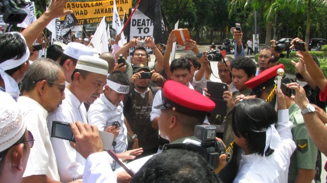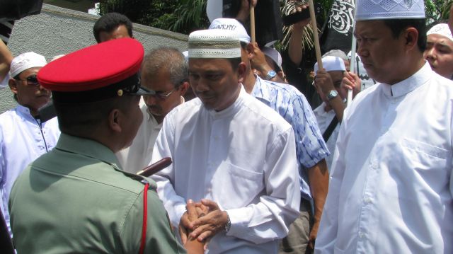 Sebaik tiba di pintu pagar Mindef, sekali lagi seruan dilaungkan oleh Umar Hussein bagi mengingatkan ATM akan tanggungjawab mereka untuk berjihad demi menjaga kesucian Nabi Muhammad SAW dari terus dicemari oleh puak kuffar.
