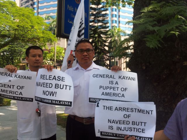 Pada masa yang sama, HTM melaungkan seruan di luar pagar bangunan Suruhanjaya agar pihak rejim membebaskan segera Naveed Butt dan mengingatkan rejim Pakistan yang apabila Khilafah tegak sedikit masa lagi, Khalifah sudah pasti tidak akan membiarkan jenayah yang dilakukannya ini begitu sahaja.