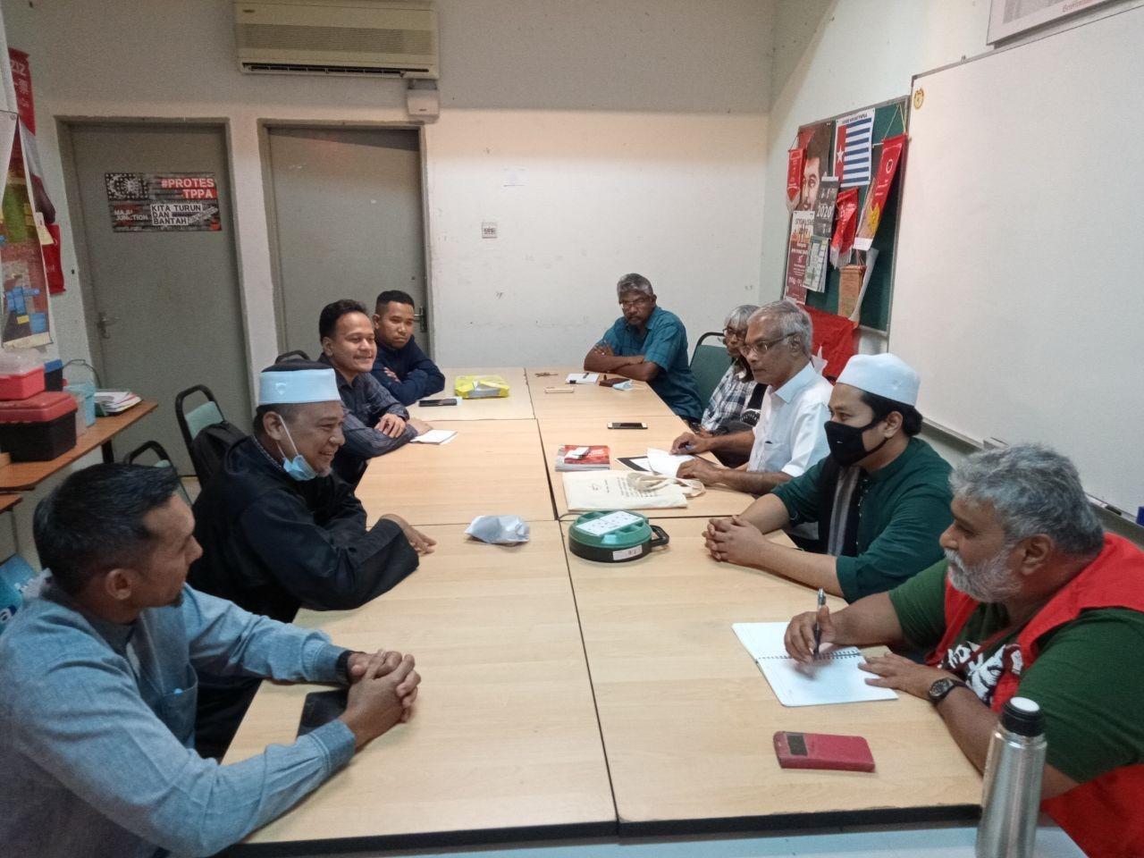 Delegasi HTM yang diketuai oleh Ketua Pimpinan Pusat HTM, Ustaz Muadz Abu Thalhah telah disambut mesra oleh Pengerusi PSM, Dr. Michael Jeyakumar Devaraj dan beberapa Ahli Jawatankuasa (AJK) Pusat yang lain.