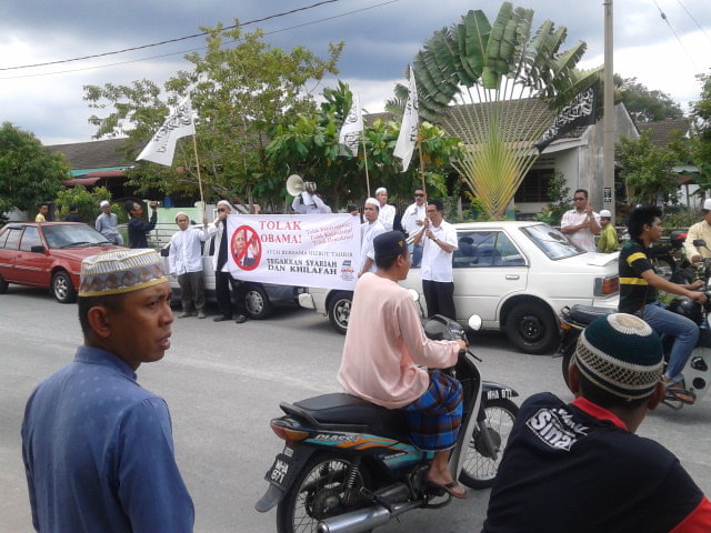 KUALA LUMPUR 6 September – Setelah melancarkan kempen di alam maya sejak lebih tiga minggu lepas, Hizbut Tahrir Malaysia (HTM) hari ini telah melakukan seruan selepas solat Jumaat, untuk menolak kedatangan presiden Amerika Syarikat, Barack Obama ke Malaysia. Seruan yang sama telah dilakukan oleh anggota HTM di beberapa buah masjid terpilih di seluruh negara.