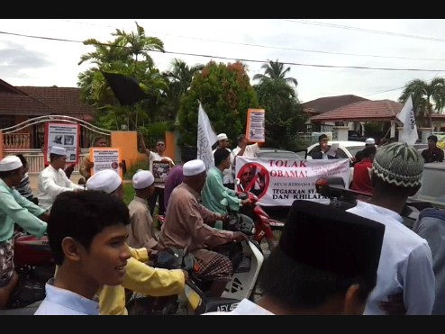 Obama, selaku ketua pengganas dunia ini juga dijangka membawa idea demokrasi, kebebasan dan hak asasi manusia yang penuh kekufuran, selain mahukan umat Islam menjadi Muslim moderat. Inilah antara inti pati seruan yang disampaikan oleh HTM yang nampaknya menarik perhatian ramai jemaah.