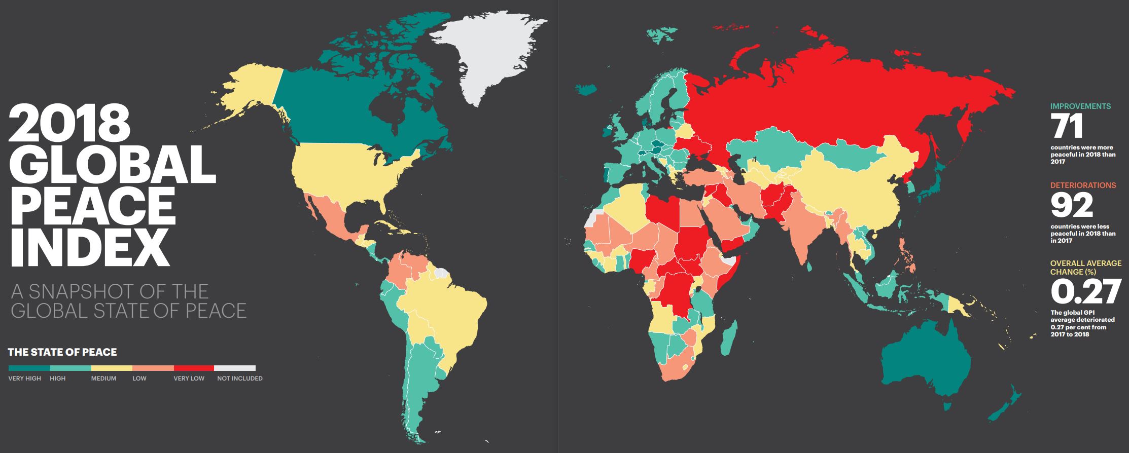Indeks Keamanan Global (IGP) 2018 yang baru sahaja dikeluarkan oleh Institusi Ekonomi dan Keamanan (IEP) mengesahkan apa yang sudah diketahui masyarakat dunia bahawa dunia semakin bergolak dan hura hara akibat perang.
