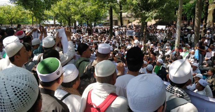 Sebaik sahaja hakim menjatuhkan hukuman, Jurucakap HTI Muhammad Ismail Yusanto lantas berdiri lalu melaungkan takbir berulang-kali yang secara spontan disahut oleh ulama, pelajar pondok pesantren, dan aktivis Islam yang berada di dalam kamar perbicaraan. Peristiwa tersebut turut mendorong ribuan ulama, pelajar pondok pesantren, dan aktivis Islam yang menyaksikan perbicaraan secara lintas langsung di luar bangunan mahkamah untuk bingkas melaungkan seruan Khilafah.