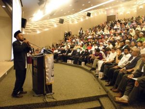 BANGI 26 Jun – Konferens Kebangkitan Khilafah 2011 anjuran Hizbut Tahrir Malaysia (HTM) dan Khilafah Centre (KC) hari ini telah berjaya menarik lebih kurang 800 orang peserta. Auditorium Abu Zarim, Integrated Learning Solution (ILSAS), Universiti Tenaga Nasional (UNITEN) yang hanya dapat menampung tidak lebih dari 600 tempat duduk, penuh sesak dengan orang ramai sehingga ada yang terpaksa berdiri di belakang dan juga ditangga-tangga. Setelah tidak ada ruang kosong di dalam auditorium, pihak penganjur menyediakan layar di luar dewan bagi membolehkan lebih seratus hadhirin yang terpaksa berada di luar, menyaksikan perjalanan konferens.