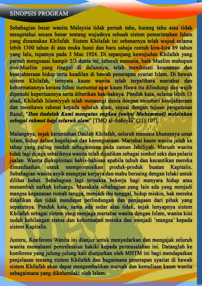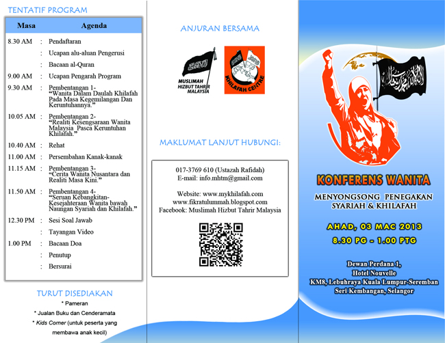 KONFERENS WANITA: Menyongsong Penegakan Syariah dan Khilafah Kemaskini terakhir Feb 25, 2017 Kongsi Jemputan Ke KONFERENS MUSLIMAH: Menyongsong Penegakan Syariah & Khilafah Baca Juga: Mini Seminar: Wanita Mulia Dibawah Naungan Syariah dan Khilafah KONFERENS MUSLIMAH: Selamatkan Wanita dan Anak-anak Dengan Syariah dan Khilafah Konferens Muslimah Bangkit Kesedaran Bahawa Wanita Dan Anak-anak Hanya Selamat Dalam Naungan Syariah dan Khilafah Seribu Muslimah Satukan Visi dalam Konferens Wanita dan Syariah Kongsi FacebookTwitterGoogle+WhatsAppEmail