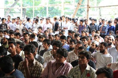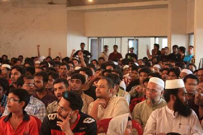 Kelihatan para peserta begitu bersemangat mengikuti konferensi yang dianjurkan oleh Hizbut Tahrir Bangladesh ini. Setiap ruangan dipenuhi para hadirin malah para peserta terpaksa berdiri hingga ke luar dewan.