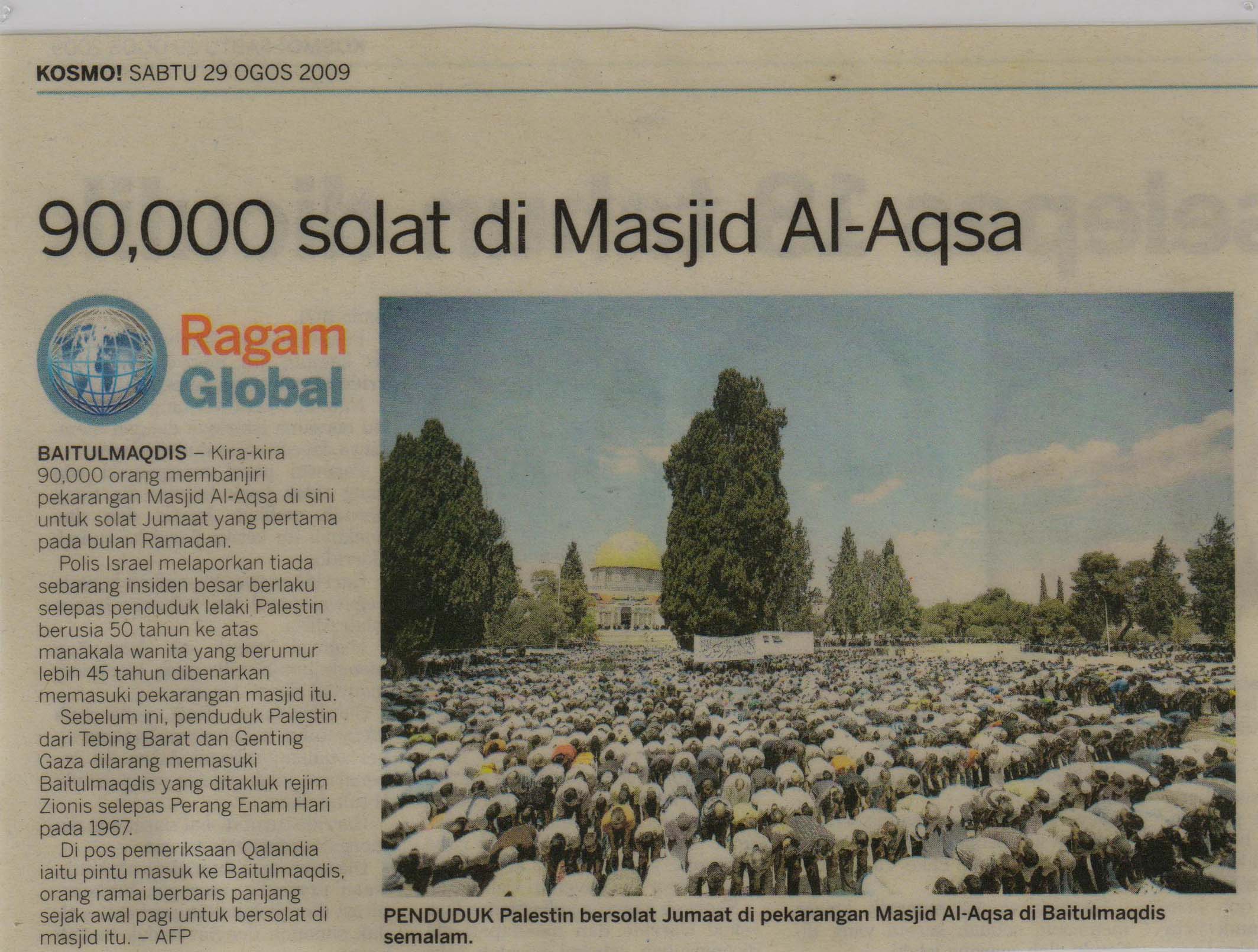 Kosmo 29 Ogos 2009 – 90000 Solat Di Masjid Al-Aqsa Pada Feb 5, 2011 Kongsi Baca Juga: Islam Menjamin Kesejahteraan Wanita – Ogos 2009 Mastika Ogos 2009 – Ketibaan Khilafah Makin Hampir…. Fikratul Ummah – Ogos 2009 Solat tarawih di Masjidil Aqsa perlukan permit tentera Israel! Kongsi FacebookTwitterGoogle+WhatsAppEmail