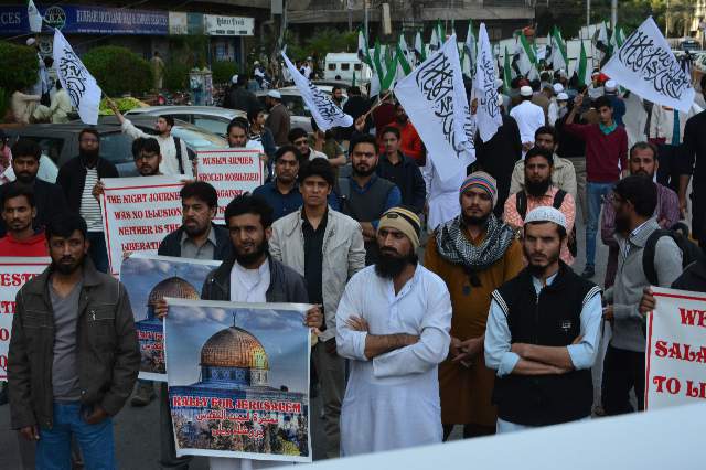 O Muslims of Pakistan! For the protection of Masjid Al-Aqsa, Hizb ut Tahrir Wilayah Pakistan is amongst you now, addressing you through protests, meetings, leaflet distribution and social media. It is assuring you that our armed forces are not only willing, they are capable of liberating Masjid Al-Aqsa. You must work with Hizb ut Tahrir to uproot these rulers, the defenders of the crusaders and the Jewish occupation. These rulers are the great obstacle that stands in the way of victory for our armed forces, Islam and Muslims and the liberation of occupied Muslim Lands. Honor your responsibility before Allah (swt) in supporting Al-Aqsa, by working with the Shabab of Hizb ut Tahrir for the establishment of the Khilafah on the Method of the Prophethood. Only then will a Rightly Guided Khaleefah lead your sons in the armed forces in performing their duty by directing them to liberate the place of the Isra’a of RasulAllah (saw), our first Qiblah and the third of the Sacred Masaajid. RasulAllah (saaw) said,