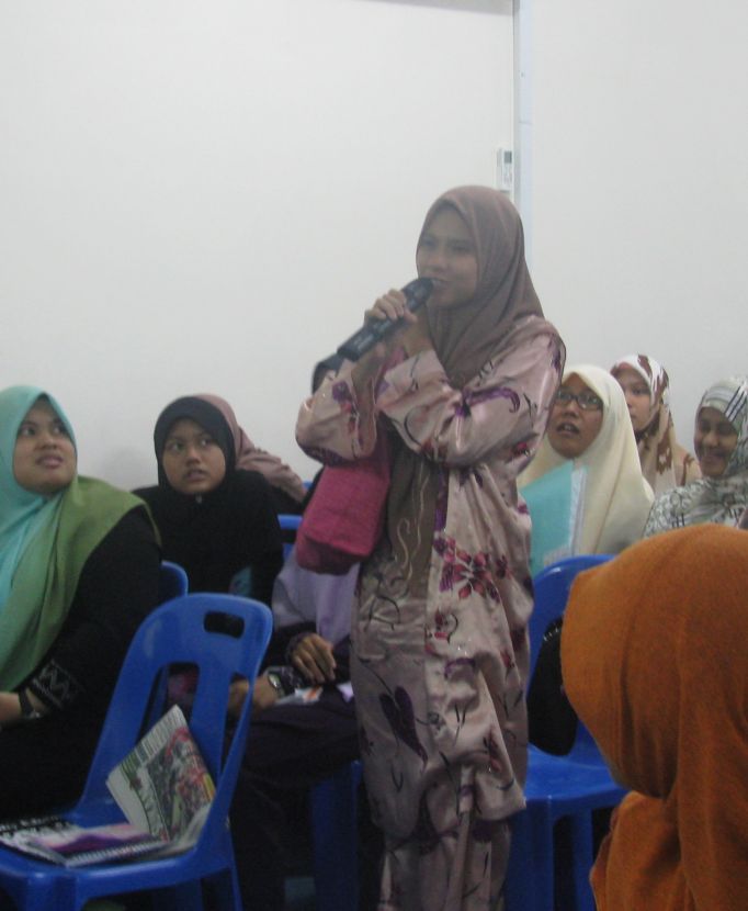 Diskusi dihangatkan lagi dengan sesi soal jawab. Dari soalan yang dilontar menunjukkan para peserta inginkan perubahan yang hakiki iaitu perubahan kepada sistem Islam secara kaffah. Kepada soalan apakah langkah pertama yang perlu dilakukan oleh seorang Muslimah untuk berhijrah, Ummu Hajar menyarankan agar para Muslimah memulainya dengan belajar dan memahami agama Islam dengan lebih mendalam. Dalam masa yang sama Muslimah juga perlu terlibat di dalam politik dan mengambil tahu urusan masyarakat. Beliau turut mengajak hadhirat untuk bersama-sama dengan MHTM dalam perjuangan yang mulia untuk menegakkan syariah dan Khilafah. Dr. Ainul juga turut mengingatkan bahawa Islam itu datang dalam keadaan asing dan akan kembali asing, maka berbahagialah orang-orang yang asing sebagaimana yang telah disabdakan oleh Rasulullah SAW.
