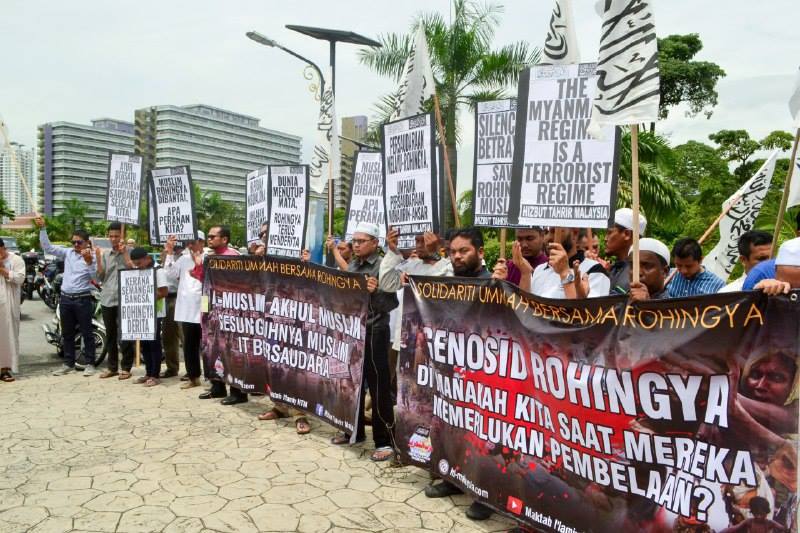 Hizbut Tahrir / Malaysia telah mengadakan perhimpunan aman dan menyampaikan satu seruan di perkarangan Masjid Wilayah, Kuala Lumpur, sejurus selepas solat Jumaat 15/09/2017 berhubung krisis Rohingya. Penyeksaan dan pembunuhan terbaru yang dilakukan oleh rejim Myanmar dan pengganas Buddha ke atas Muslim Rohingya di Wilayah Arakan adalah di luar batas kemanusiaan, yang menunjukkan permusuhan dan betapa bencinya mereka kepada Islam dan kaum Muslimin. Di dalam seruannya, Hizbut Tahrir menegaskan bahawa masalah Muslim Rohingya tidak akan selesai melalui badan dunia seperti Pertubuhan Bangsa-bangsa Bersatu (PBB), Pertubuhan Kerjasama Islam (OIC) mahupun Persatuan Negara-negara Asia Tenggara (ASEAN). Krisis Muslim Rohingya juga tidak akan selesai melalui siri lakonan dan retorik para pemimpin umat Islam.