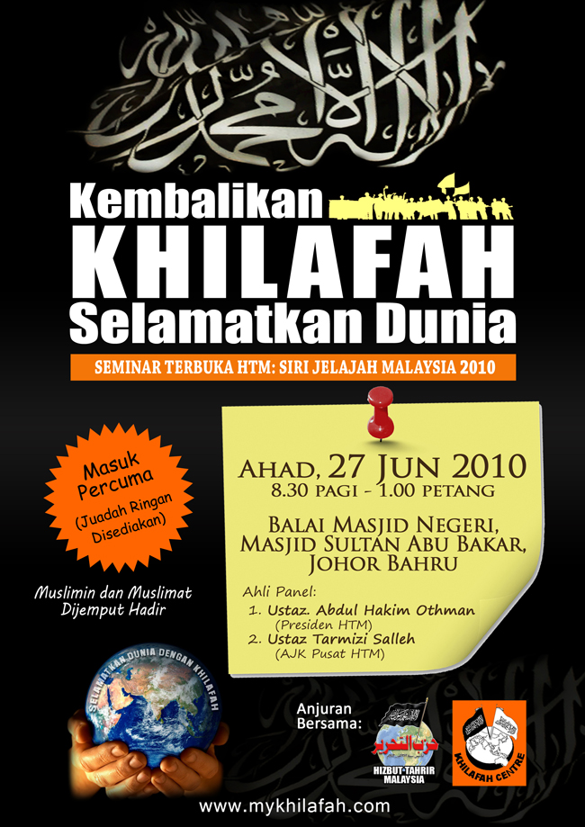 Seminar terbuka anjuran bersama Hizbut Tahrir Malaysia dan Khilafah Centre: Kembalikan Khilafah, Selamatkan Dunia