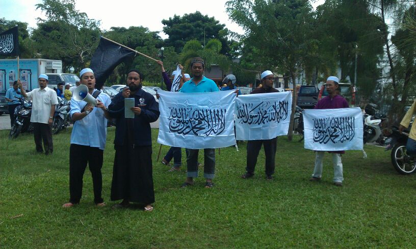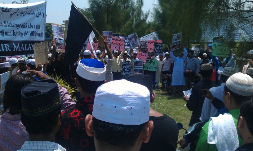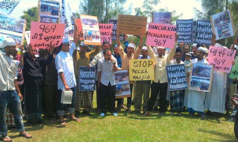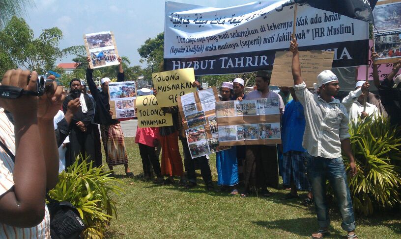 PULAU PINANG, 29 Mac: Hizbut Tahrir Malaysia(HTM) telah menyampaikan seruan mengenai pembantaian muslim di Myanmar selepas solat Jumaat. Seruan telah disampaikan di Masjid Daerah Bandar Perda bertujuan untuk membangkitkan kesedaran umat Islam bahawa satu satunya penyelesaian isu masaalah pembantaian Umat Islam di sana adalah dengan negara mengerahkan tentera berjihad melawan musuh, dan bukannya mengharapkan bantuan dari badan kuffar seperti PBB, UNESCO, ASEAN, dan lain-lain. Malangnya pemimpin umat Islam harini terus mempertahankan batas sempatan wilayah asobiah yang dibuat penjajah tampa mempedulikan nasib umat Islam yang lain sedang dibantai, dibom, dibakar,disembelih,dan perlbagai bentuk penyeksaan.