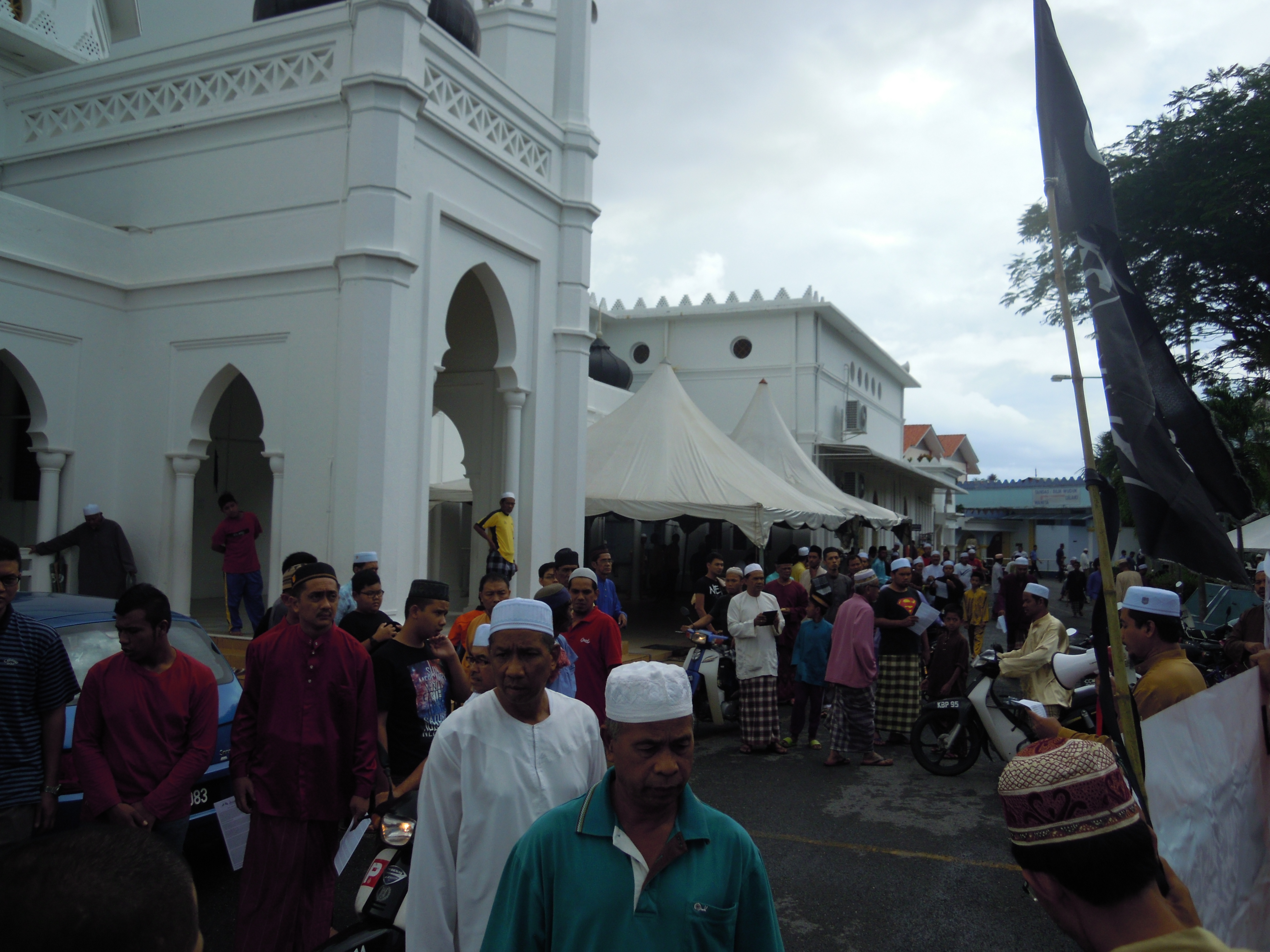 KANGAR, Perlis, Jumaat 24 Mei 2013. Buat kesekian kalinya, Hizbut Tahrir Malaysia mengadakan Seruan Pasca PRU-13 dan bersempena dengan bulan Rejab. Seruan pada kali ini telah dibuat di Masjid Alwi, Kangar, Perlis. Para jemaah telah memberikan perhatian dan seruan disambut dengan laungan takbir.