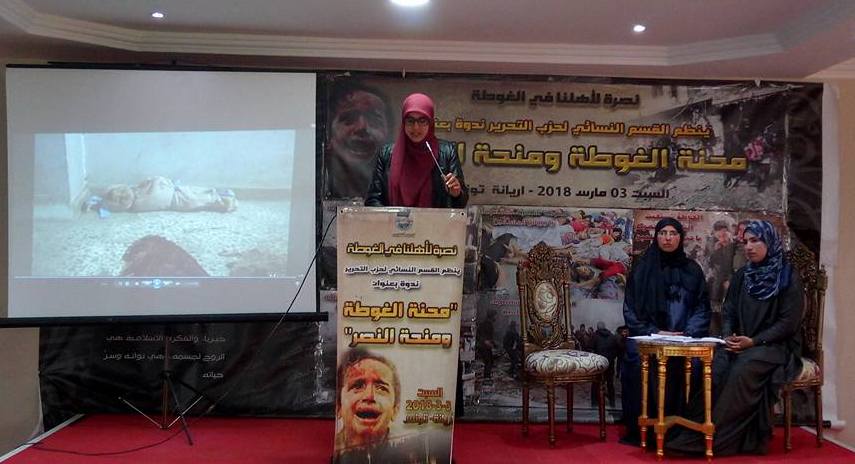 - We declare that we, the Women’s Section of Hizb ut Tahrir in the Wilayah of Tunisia, adopt the cause of our people in Ghouta, and therefore we seek to inform people of their cause and work towards lifting the grievance from them.