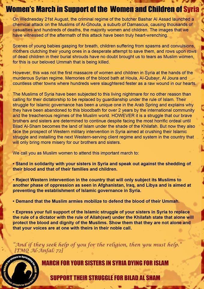 1. Press Release: Hizbut Tahrir Hold A Vital Women’s March in The UK To raise The Plight And Struggle of The Women and Children Of Syria